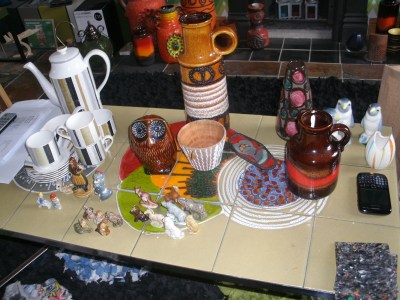 All in all, it was a pretty good day. We both really enjoyed looking round all of the stalls. I actually didn’t get anything for our £10 Ebay Challenge; Aidan got some Wade Whimsies – naturally! Here’s a group photo of all of the things we did buy. Detailed blogs will appear when I get chance!