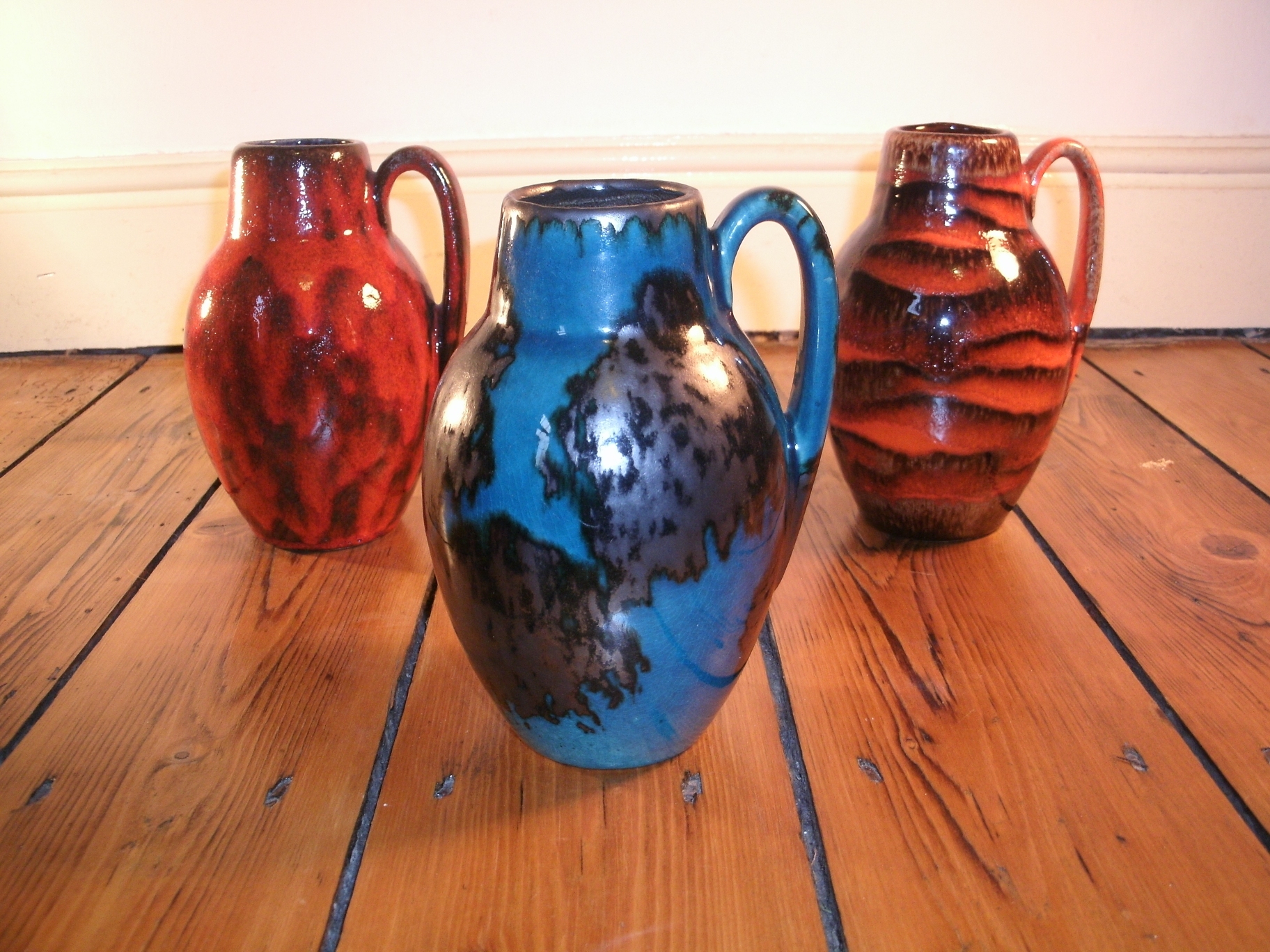 Since coming back from Germany a couple of weeks ago, I’ve been fairly busy sorting out the pots we bought, selling them on to Wowie Zowie (as previously mentioned) and some to Planet Vintage Girl. If you’ve been reading my previous posts about West German Pottery, you’ll have seen that I’m amassing a collection of Scheurich 414. Thanks to some new additions from Deutschland, I now have a grand total of 20 with 19 different glazes.