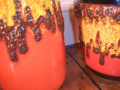 Love the glazes on these. They’re extremely bright and look fantastic with our other red and orange pots in the bedroom.