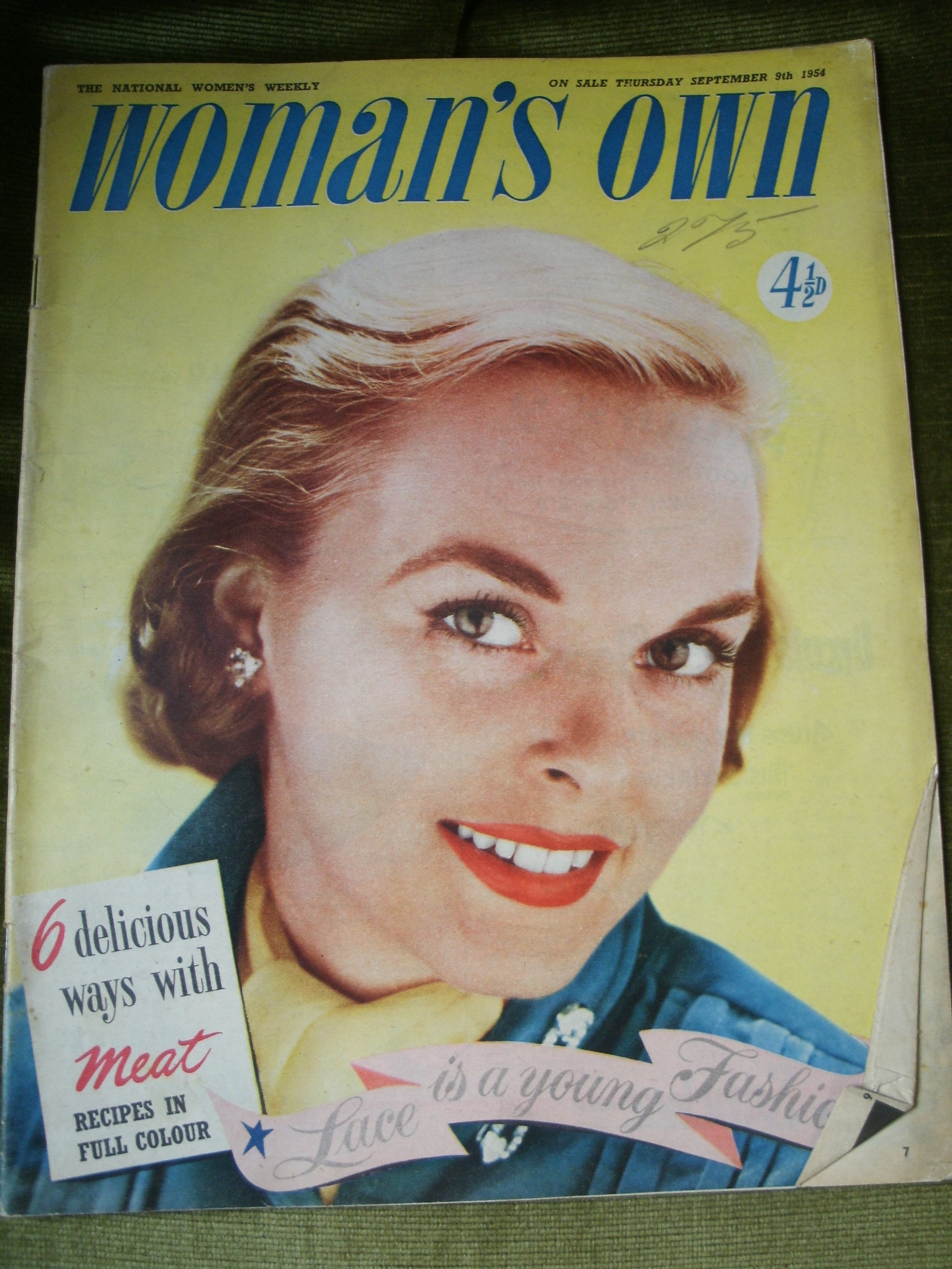 A few weeks ago I bought a stack of 20-odd vintage French magazines, all from the 40s, 50s and 60s and I was beyond excitement. Or excitement in a French sounding way… This morning, I bought forty four – yes, forty four! – Woman’s Own magazines, mainly from the 1950s but some from the 40s and a couple from the 60s. If I was beyond excitement before, I’m not sure what I am now…