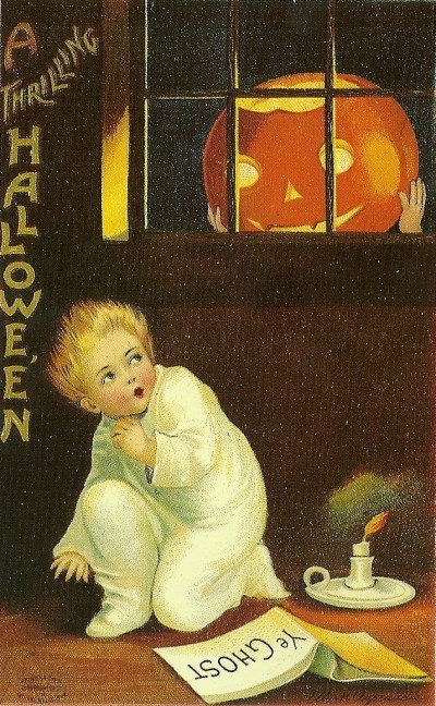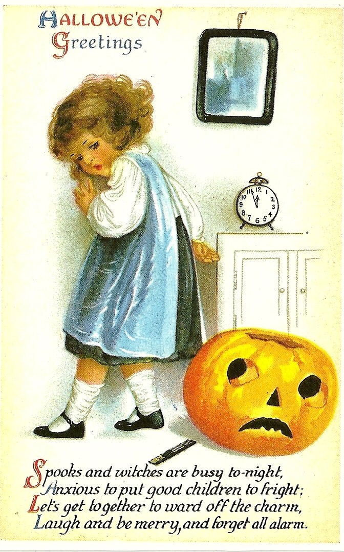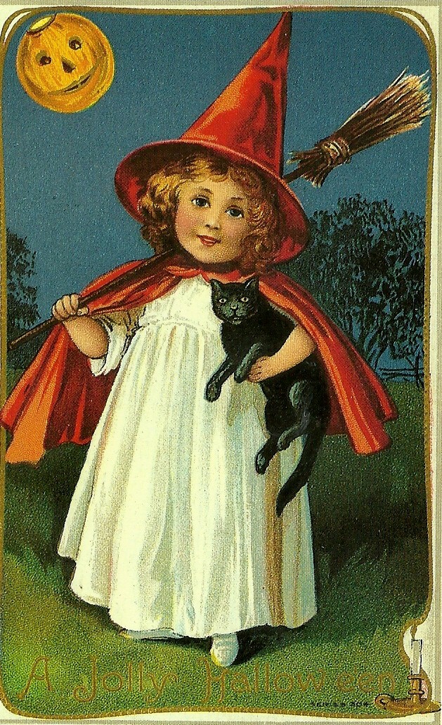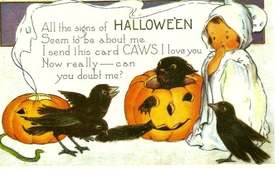 Since October the 1st, I’ve found a vintage Halloween postcard hiding somewhere around the house or on my person. My lovely, daft boyfriend knows how much I love all things vintage AND Halloween so has managed to obtain some old postcards. As they are so utterly fantastic – and I’m off work with the lurgy – I thought I’d share them.