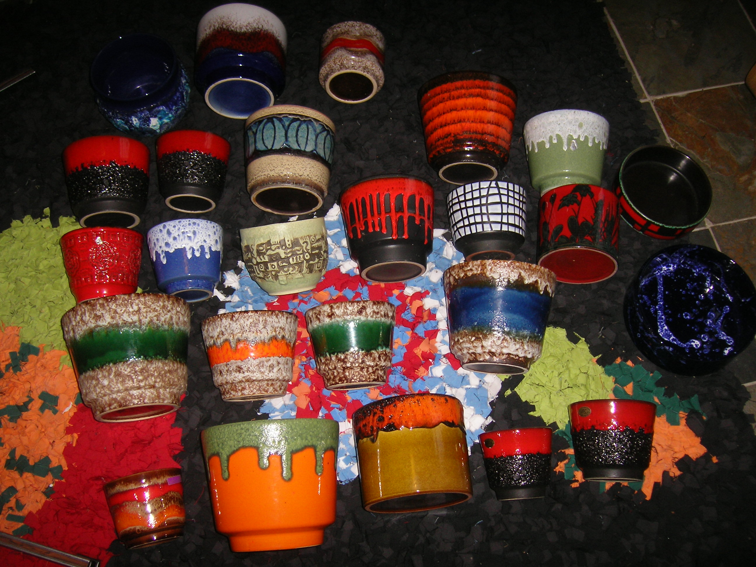 I’d like to say that the streets there are paved with West German pottery! But no, it was the result of two weeks of trawling around every flea market (it seemed!) in Germany. You’ve got some good pieces – I like the black and red Jopeko planter. We’ve got one of those too. We did have a set of them but we sold it – might be one of my regrets!