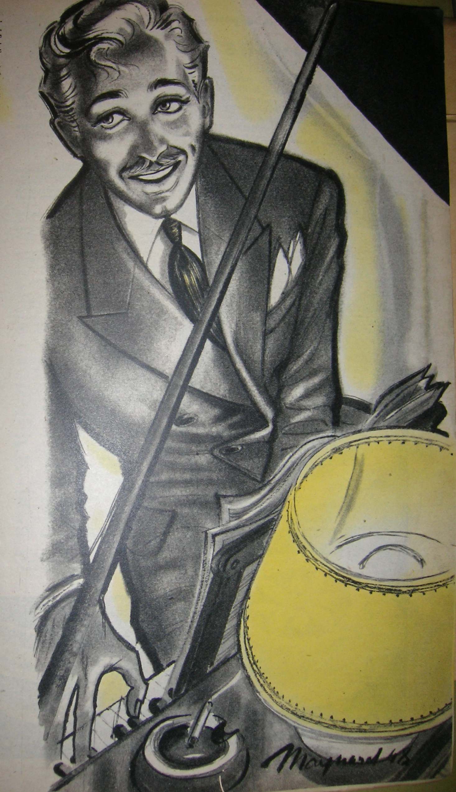 Is it me or does that man have a slightly feminine face that doesn’t match the rest of him? Very odd. He does look like he’s playing that piano like he’s apologising. Perhaps he wasn’t very good at it.