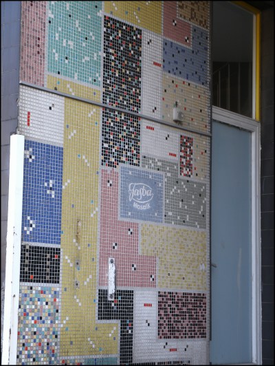 Aidan spotted this mosaic on the side of a building. He’d run off to find a toilet, leaving me to guard Tina. We then did a driveby of this wall – is that the strangest sentence ever written?