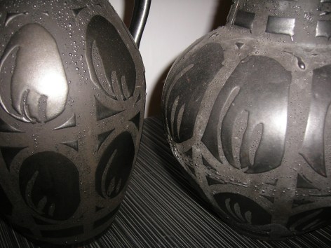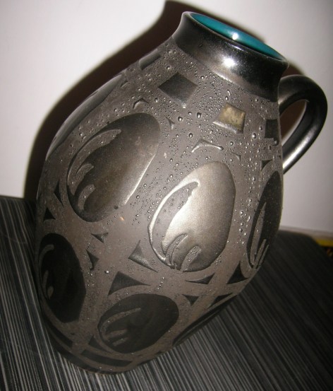 The Ankara glaze seems quite fragile on these vases. We’ve got a couple of the blue and black ones and there are a couple of nibbles out of some.