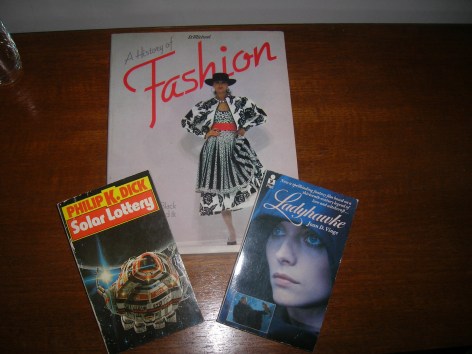 This picture probably shows off my eclectic tastes like no other! I love anything to do with fashion from decades past; I also have started reading Science Fiction – Philip K. Dick in particular. An odd mixture, but it keeps me happy.