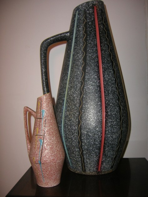 I love 50s pottery and have far too little of it. That big one’s a stunner. I actually have a vase with the same colour and decor as the small pink Scheurich but in a different shape.