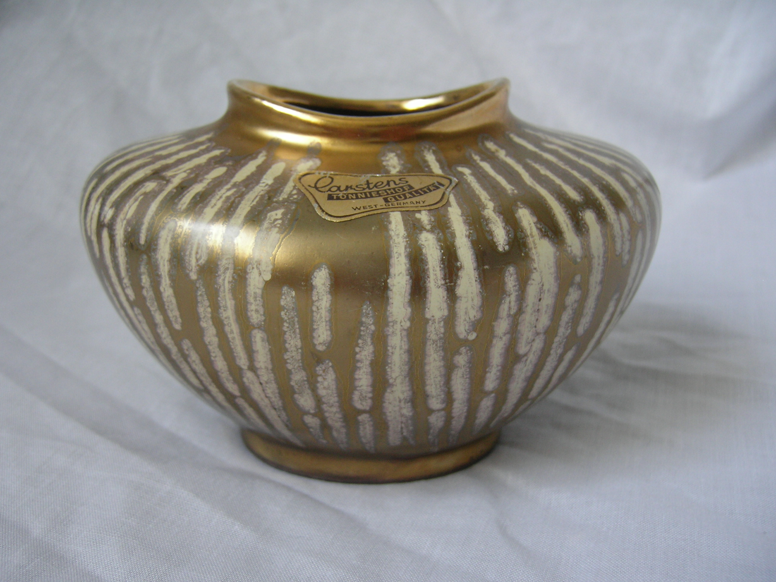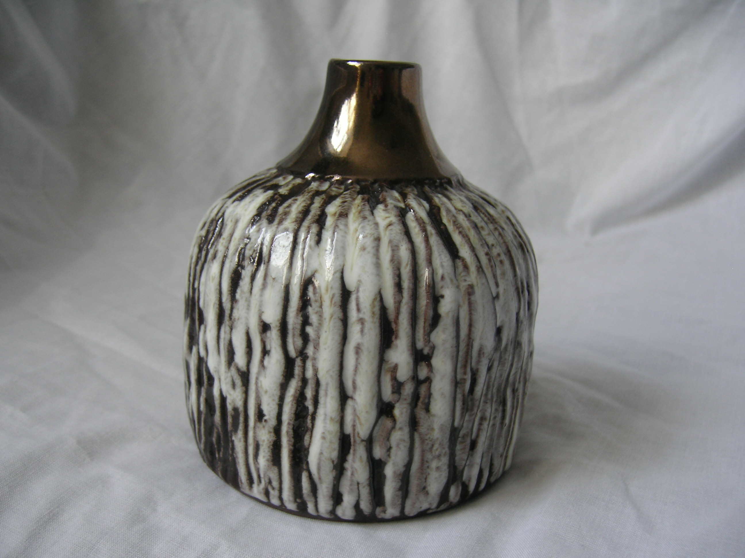 West German Pottery No Fat Lava Here… Posted by Emma on Apr 30, 2011Apr 30, 2011 Sometimes West German Pottery doesn’t have to be a multi-coloured froth of glaze: ocherous with burnt orange, violaceous with amaranthine or rubescent with flame reds. Sometimes it can be sleek. Refined. Restrained in it’s perfect, poised design. Scheurich Rate ThisShare this: Click to share on X (Opens in new window) X Click to share on Facebook (Opens in new window) Facebook Click to email a link to a friend (Opens in new window) Email Click to share on Pinterest (Opens in new window) Pinterest Click to share on WhatsApp (Opens in new window) WhatsApp More Click to share on Tumblr (Opens in new window) Tumblr Like Loading... Related