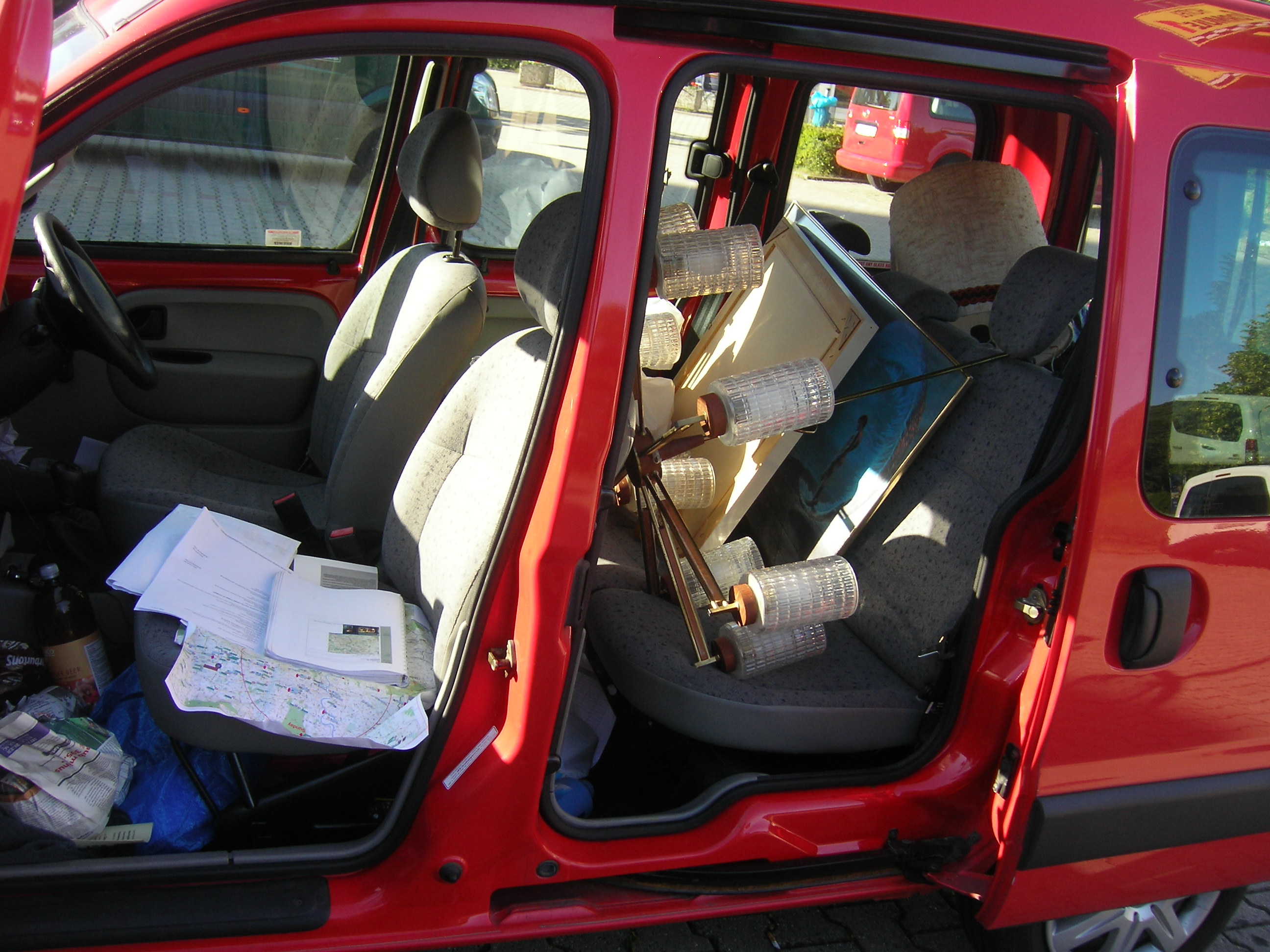 If anybody asks, she is most definitely a car and not a van… How many pieces of retro pottery, lamps, glass vases, pictures etc., etc.,  can you fit into a Kangoo? The answer is quite a lot. She wasn’t filled up to the rafters like Tina used to be and we’ve counted about 250 pieces as an estimate. This includes some whopping lampshades that we used to have to leave.