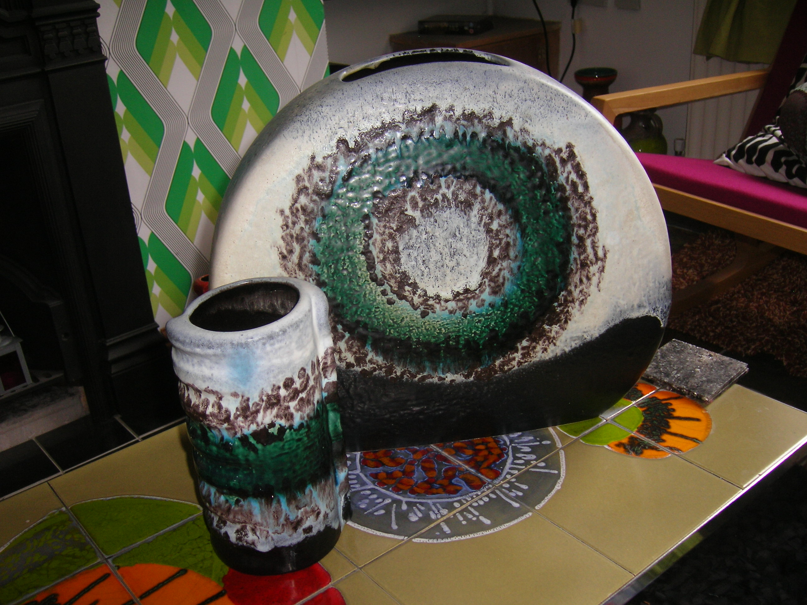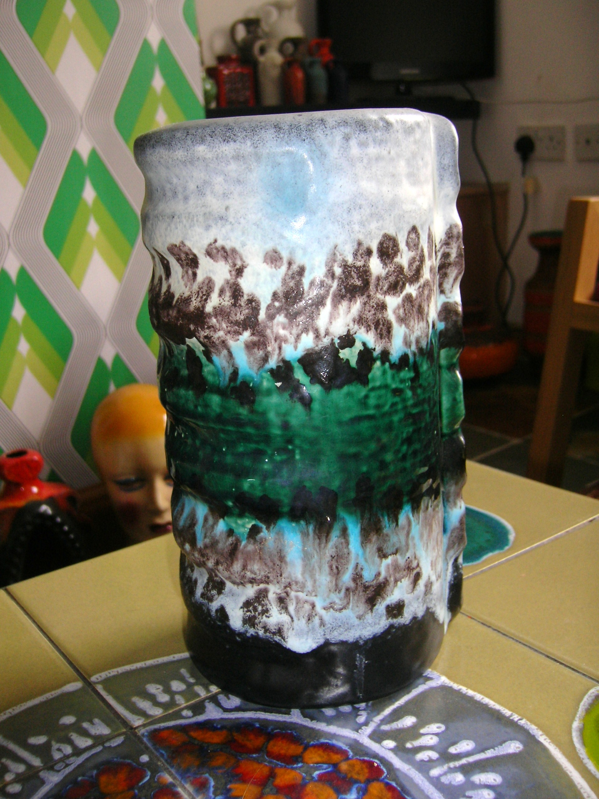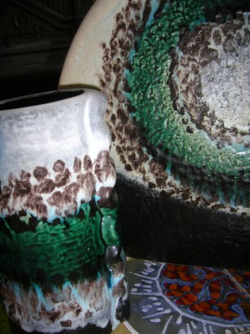 I love the glaze on these. The blue colour where the green and white meet is exquisite. They’re so big too. Dümler & Breiden make some of the most ostentatious vases, in my opinion. Some of our craziest pieces of West German pottery are by them. Whilst the glazes may not be as ‘Fat Lava’ as many new collectors would like, they’re both such striking pieces of pottery.