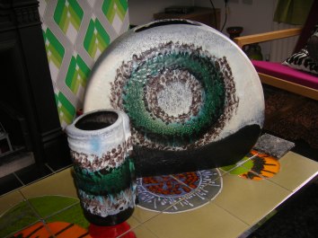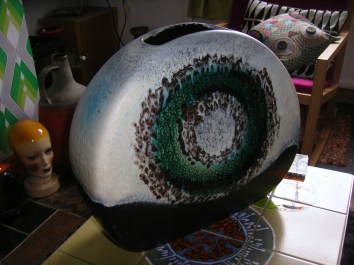 This one is currently living on the hearth in front of the fire. It can’t really stay there, but there’s nowhere else for it to go. The house is bursting at the seams at the moment and Aidan heads off again on Tuesday to Germany for another pot-buying expedition. It’s madness!