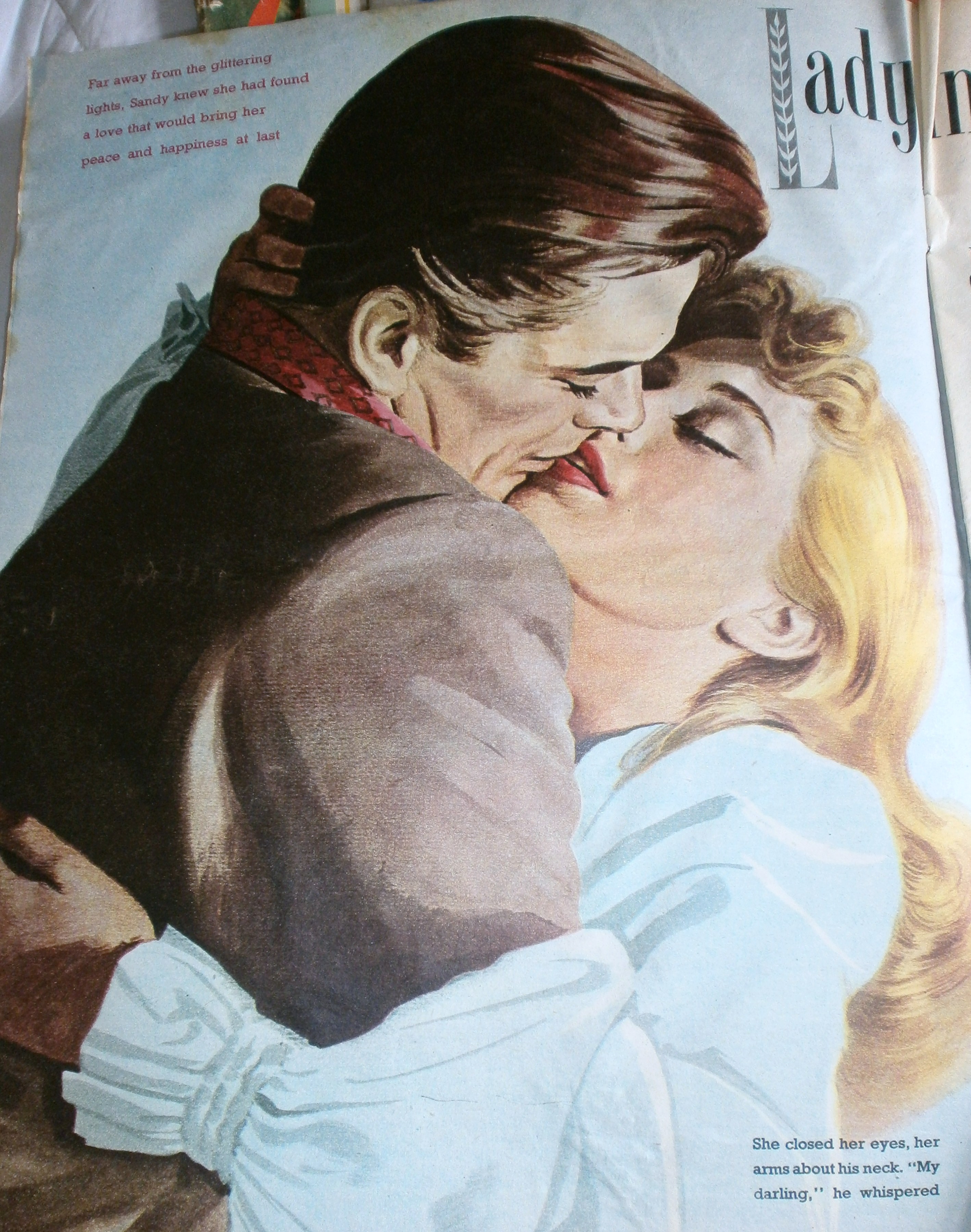 As is typical for women’s magazines at this time, many of the pictures depict submissive women in a passionate pose with a dominant man. It wasn’t the done thing for a lady to do the chasing back then…