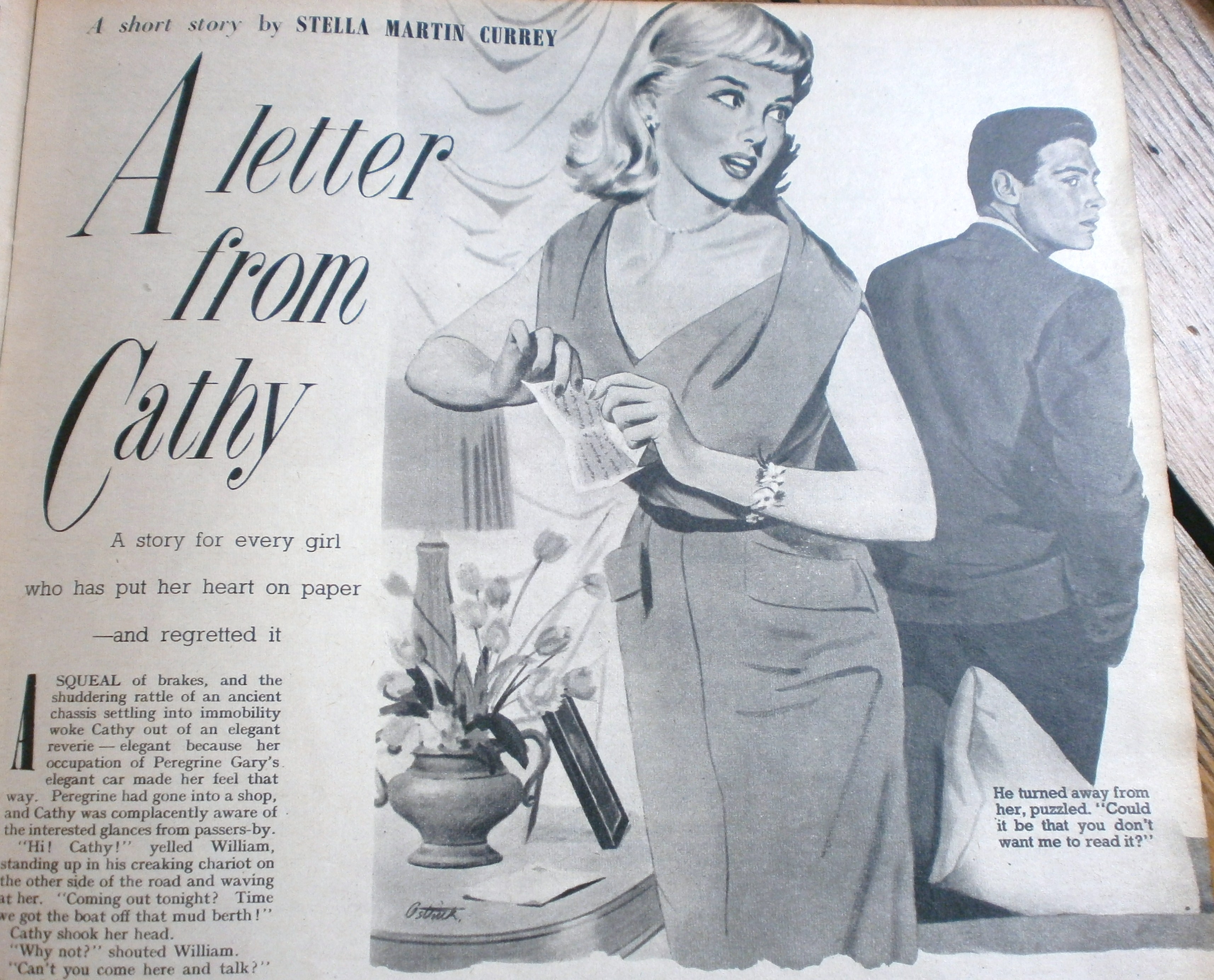 Ostrick worked for the Artist’s Partners Agency in London, as did Aubrey Rix and many other noted illustrators of the era. However, there is literally nothing about him on their website. According to the Travelling Art Gallery website, Ostrick designed covers for the ‘John Bull’ and ‘Romance’ magazines. I also found a link to a James Bond front cover, when on another site it named Ostrick as the illustrator under the alias ‘J. Oval’.