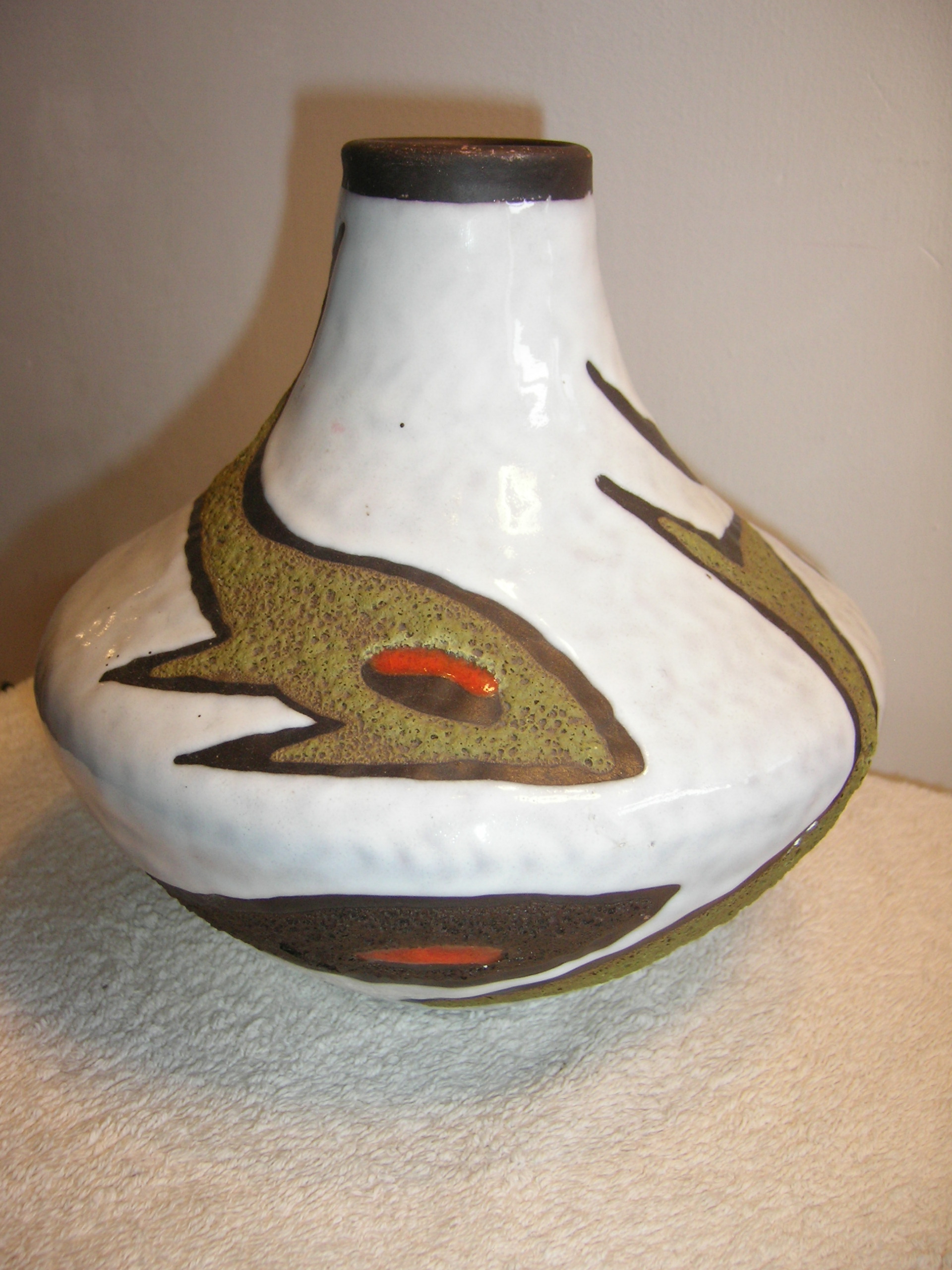 Aidan bought this gorgeous pot from Kevin Graham when we visited him in Germany this summer. The pot is by Carstens, and off the top of my head, I think it was designed by Gerda Heuckeroth (Kevin or Stuart will correct me, if I’m wrong!). It features stylised pictures of starfish and sharks.