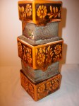 Last year, I really enjoyed making an autumn display with pottery in the appropriate colours, garnished with a few pumpkins, unusual-coloured squash, twigs and dried chestnut cases. Something about West German Pottery… it lends itself so easily to a themed display; a result of the multitude of colours and cacophony of glazes.