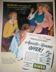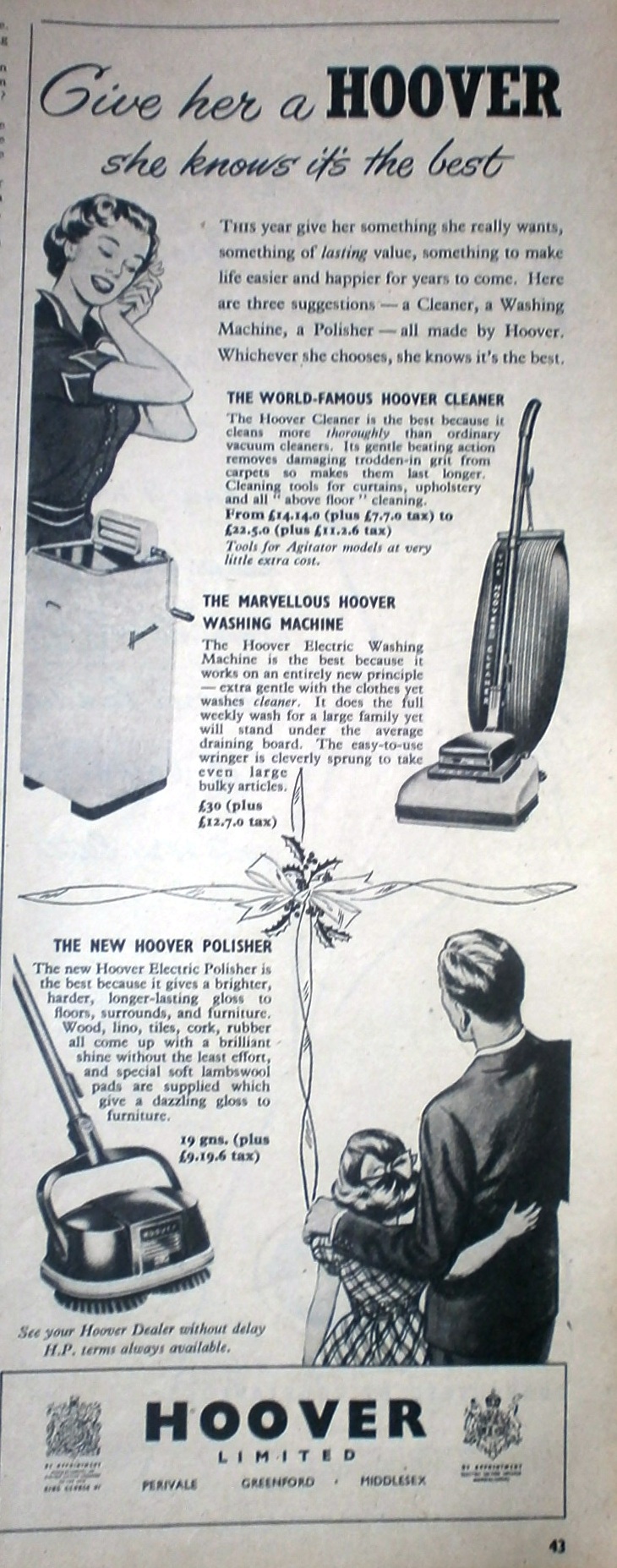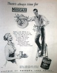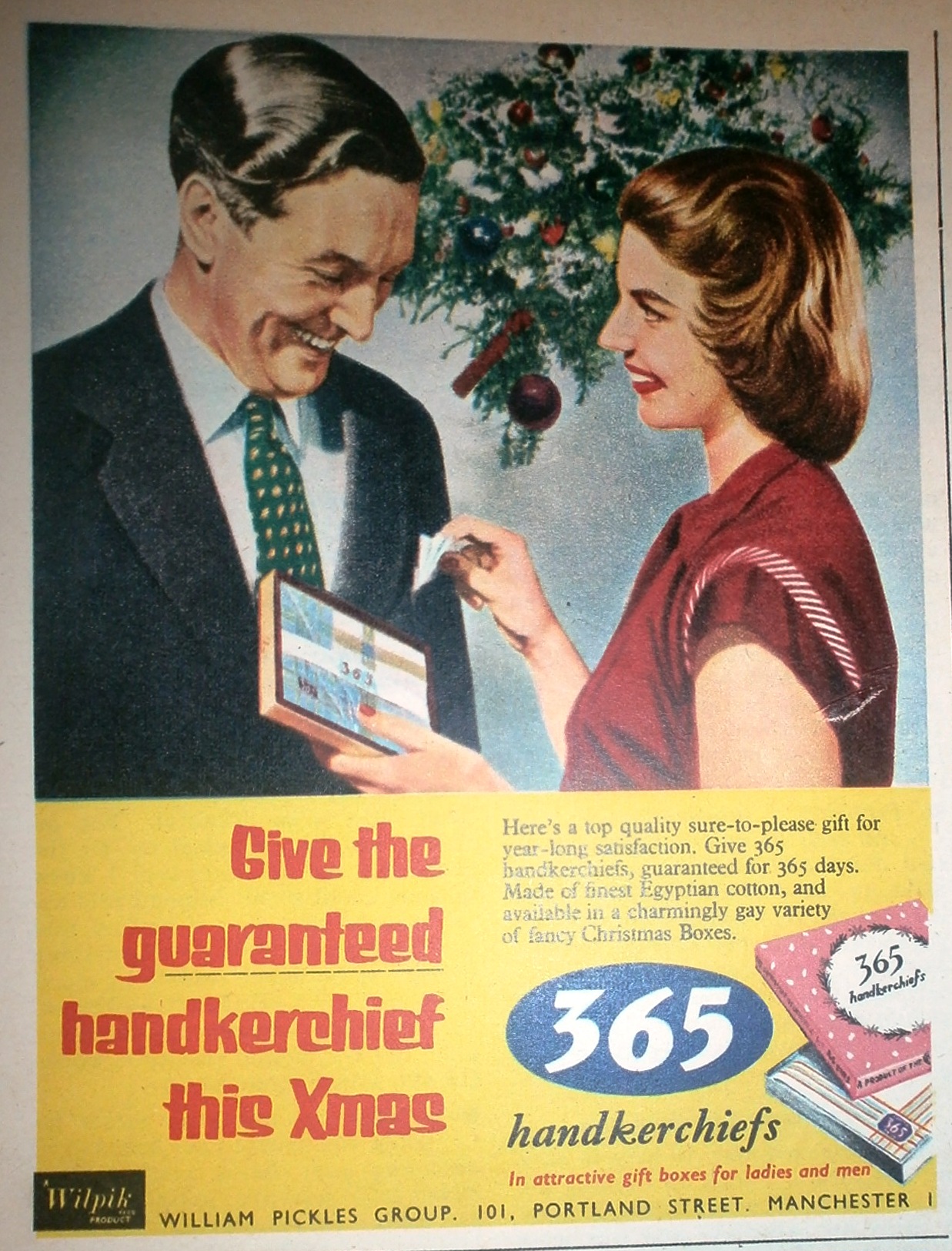 The advertisers of the 1950s seemed to promote a ‘fake realism’ quite strongly. By that I mean, that each image seems intended to portray a realistic lifestyle want or need but quite often in a fake-looking way. Christmas seems to give them an excuse to release some imaginative advertisements; yet for some of them, I can’t help but feel it’s an excuse to ‘bung’ on a few Christmas graphics and see how it sells: