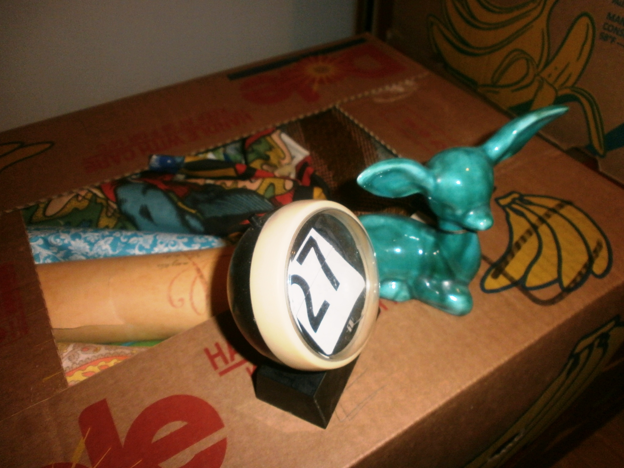 The Anglia pottery deer and yet another retro calendar have sat on our computer desk for at least three years. Hopefully, they’ll find a little spot in the new house.