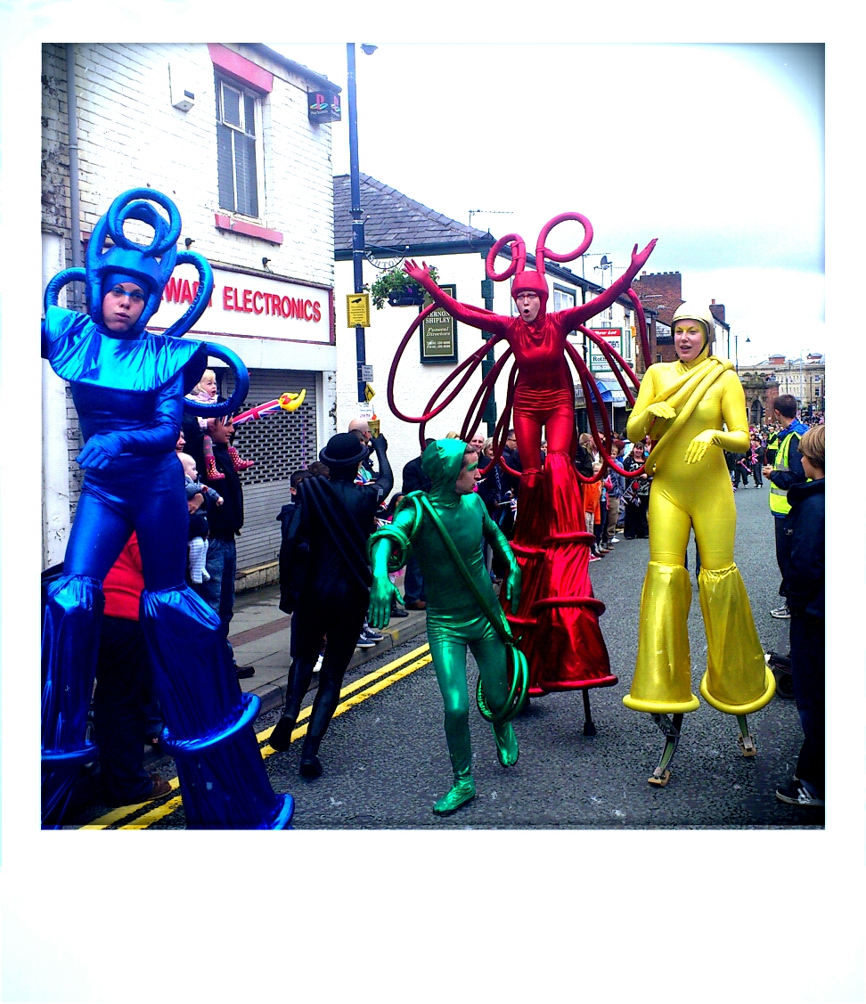I liked the procession in Ashton. It wasn’t all fancy, overblown and trumpeted up by the media at all, but what it did have was local people, a fantastic atmosphere and a bit of character. Yes, the town is a bit dingy in places, but the spirit and excitement was second to none. Everyone seemed to be having a great time, waving their flags and cheering on the creepy people on stilts…