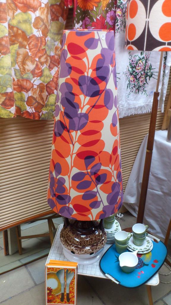 Last weekend we went to the Vintage Village at Stockport’s Historic Market. We’ve been a couple of times before, and with nothing planned for Sunday, we decided to go at the last minute. I’m so glad we did! We took along a couple of pieces of West German pottery that we’d sold to our friends Alex and Alison. They have a fantastic stall there called snyggstyle – it’s made up of virtually everything we would want for ourselves! Alison has been learning how to make lampshades to fit the vintage bases and they look brilliant. I bought a couple of fabric remnants from her to use to make bibs from. I forgot to take a picture of their stall, but you can visit their Facebook group and see pictures from previous stalls they’ve done.