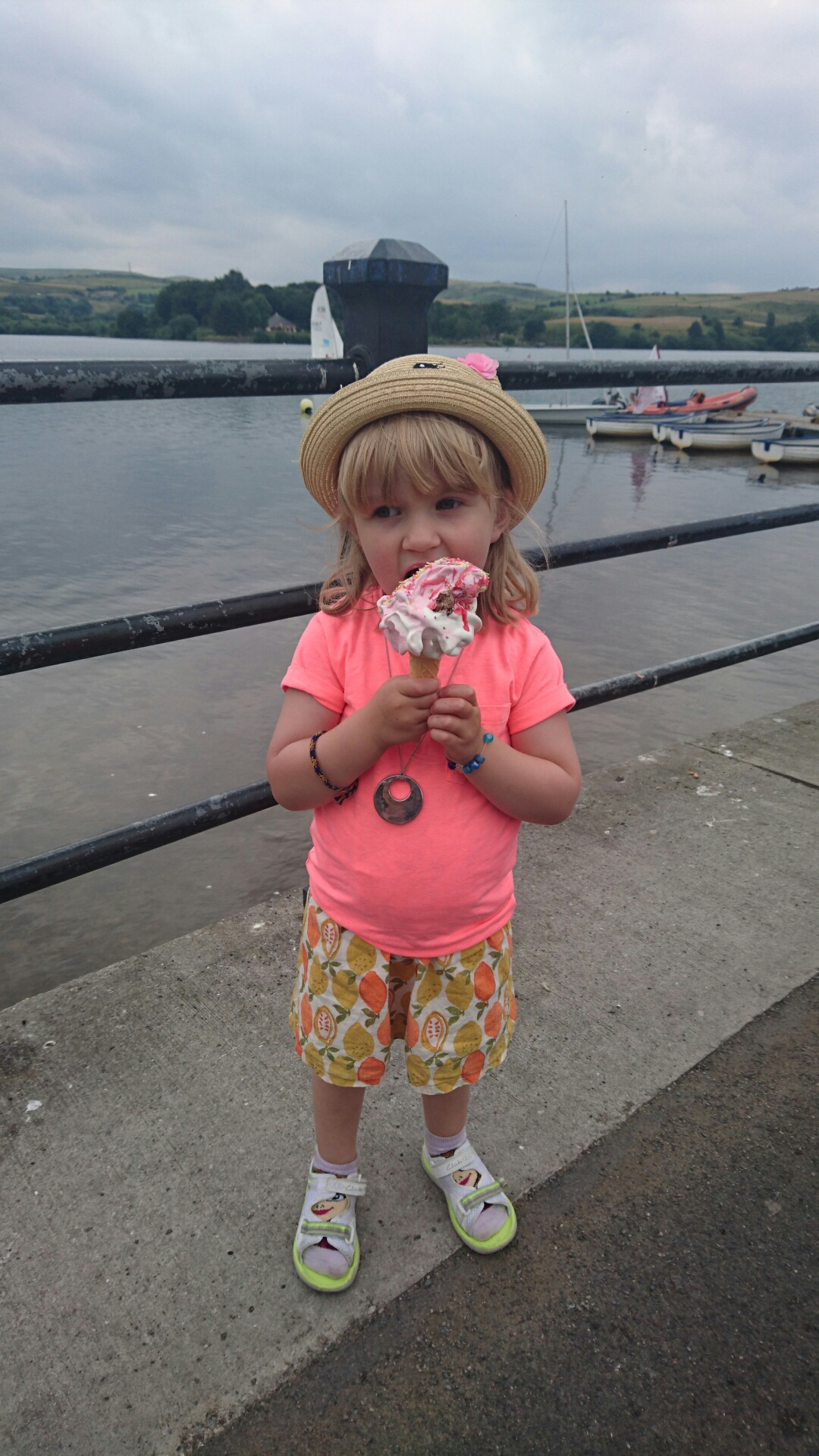 Last weekend, Aidan was on a stag do on Saturday, so I took the kids to Hollingworth Lake and Hebden Bridge with my friend and her kids. It was lovely! Little walk around the lake, picnic, ice-creams 🍦as big as your face (see above). Then a quick trip into Hebden for a look round the chazzers. Just got a board game. Nowt else. But we did have chips in the park and chased a few Pokemon too.