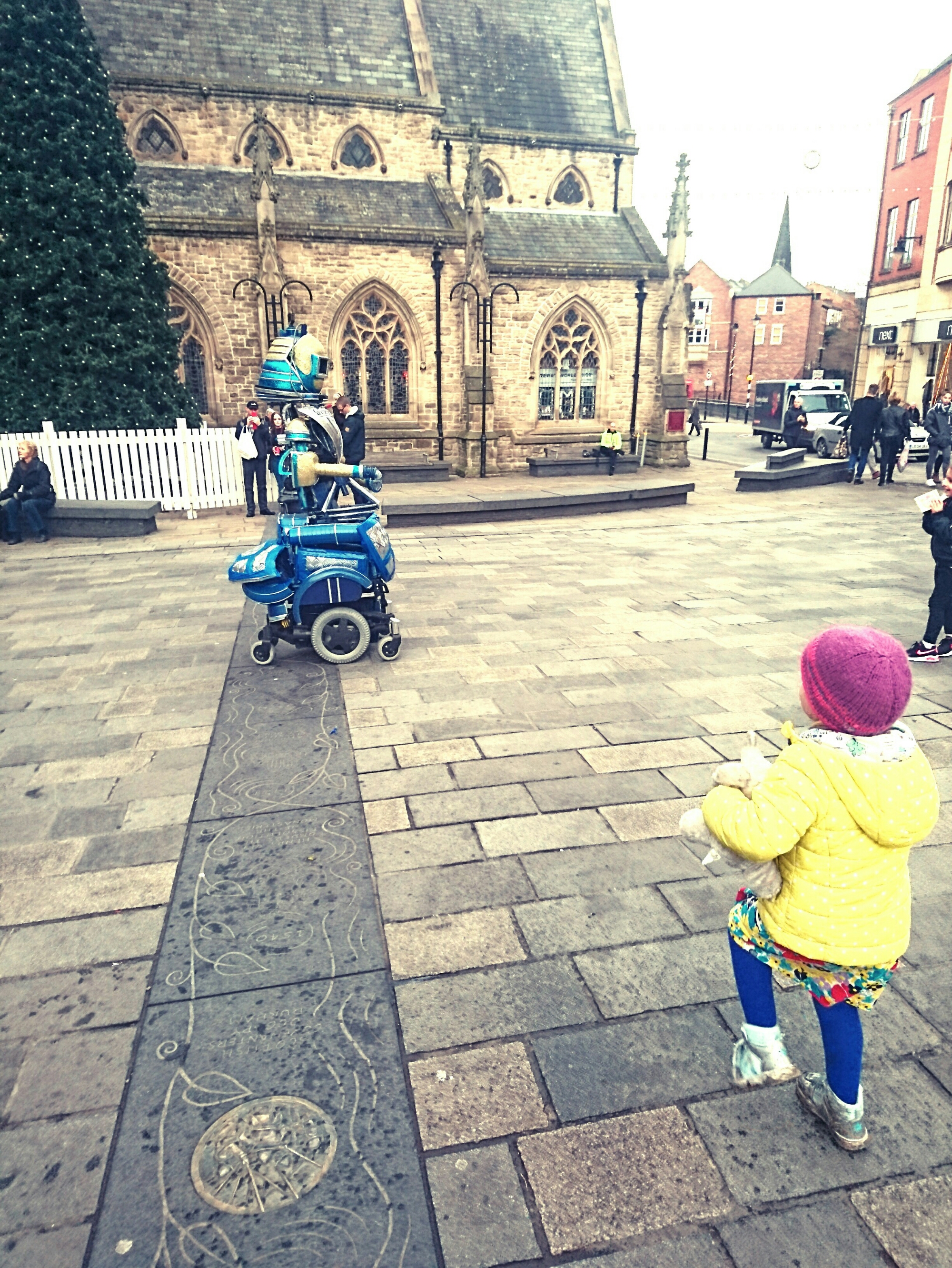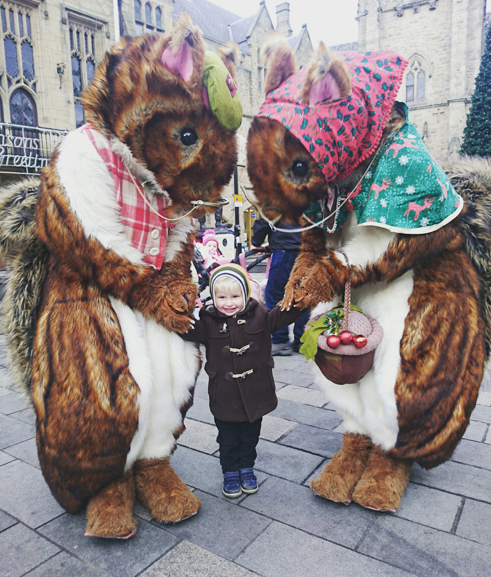 There was a little Christmas market on while we were there, nice to look round but we didn’t buy anything. on Sunday, the kids were enthralled by the giant squirrels and robot. Corliss chased the robot round for ages, enticing it to squirt her. She was soaked! Dexter loves teddies and fluffy toys so he was smitten with the squirrels.