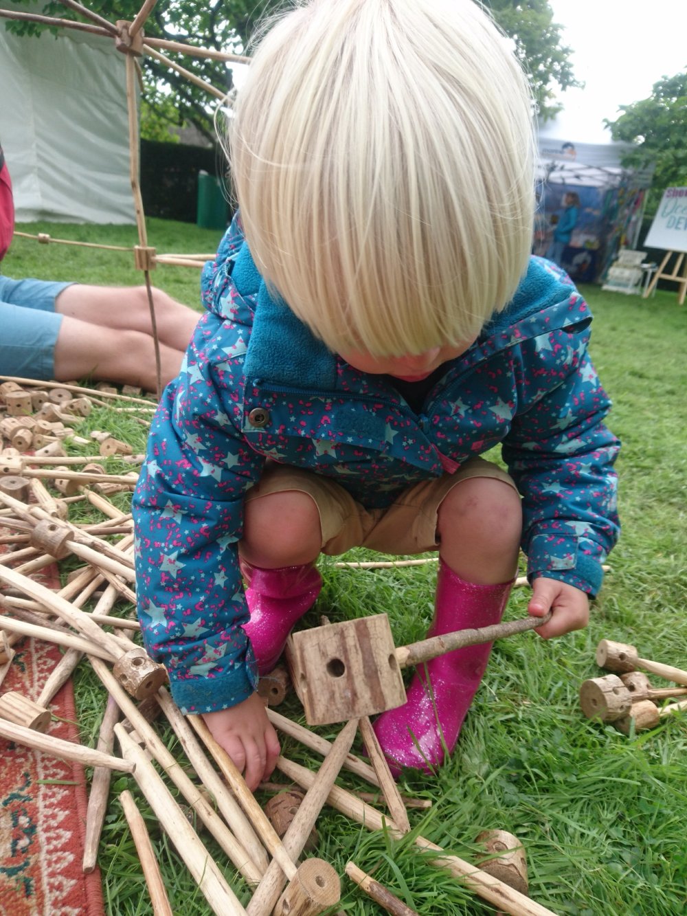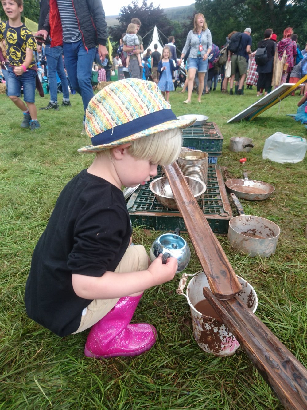 The craft tent was really good. It was run by a company called Junkfish and had different activities on every day. The kids had a go at animation, spinning wool, making headdresses, playing such clay; in fact, the whole kids area was fantastic. Although there s nearly a toddler fight over this ball rolling thing made from drainpipes that they were all mad about.